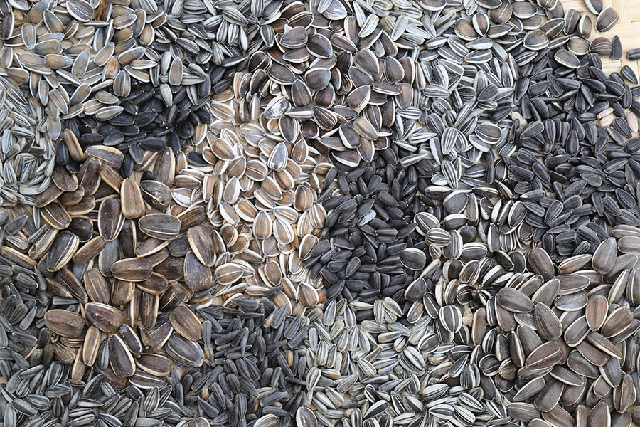 The sunflower seeds vary with respect to their color, pattern and shape.