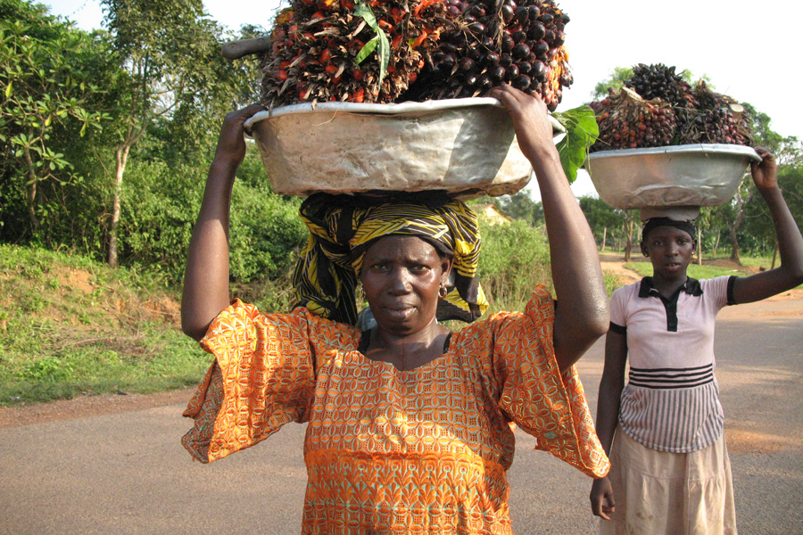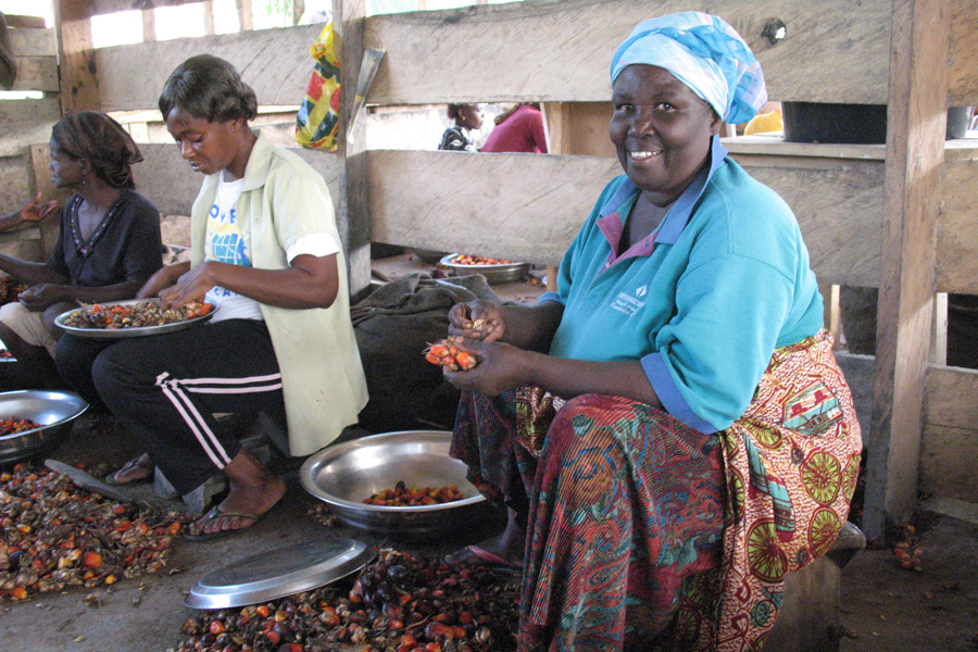 The picking of the fruit bundles and most other processing steps are done by hand. After the fruits have been harvested, they are steamed in water in order to prevent further product deterioration. Afterwards the fruits are pressed and the shiny red crude oil is clarified. Finally, the oil is filled into tanks for storage. Product quality is monitored throughout the entire processing: several employees permanently review and revise cultivation, harvest and the processing steps.