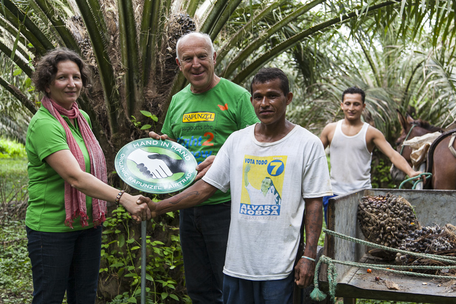 Serendipalm produces organic HAND IN HAND palm oil in the West African country of Ghana, the region where the oil palm originates from. The heat resistant palm oil is recovered from the unimposing oil palm fruits. The cultivation of oil palms and the processing of the palm oil itself are located in the southern part of Ghana, around and in the village of Asuom. In 2007, US-manufacturer Dr. Bronner’s Magic Soaps initiated the palm oil project; and since 2009 the palm oil is fair trade certified.