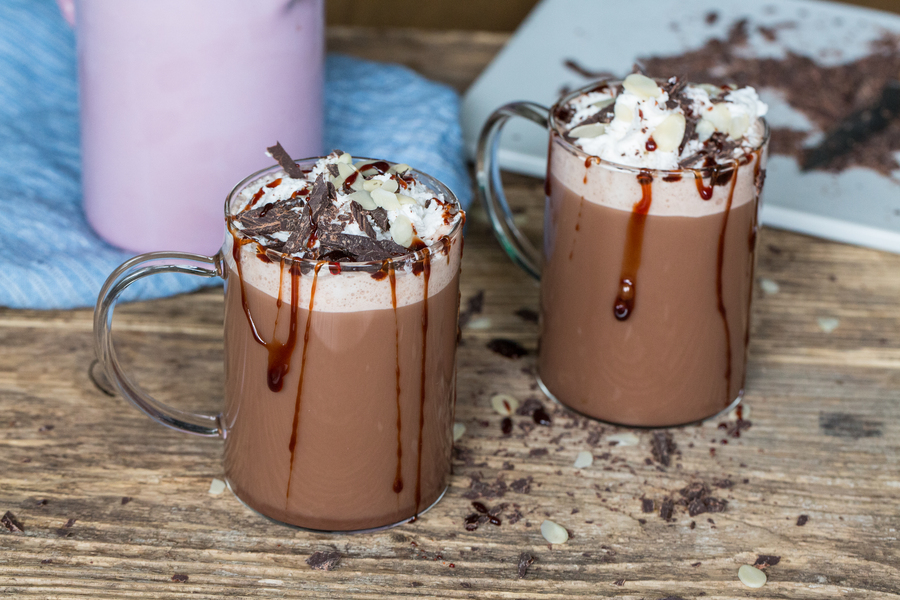 Hot chocolate with nougat cream, coconut blossom syrup and almonds
