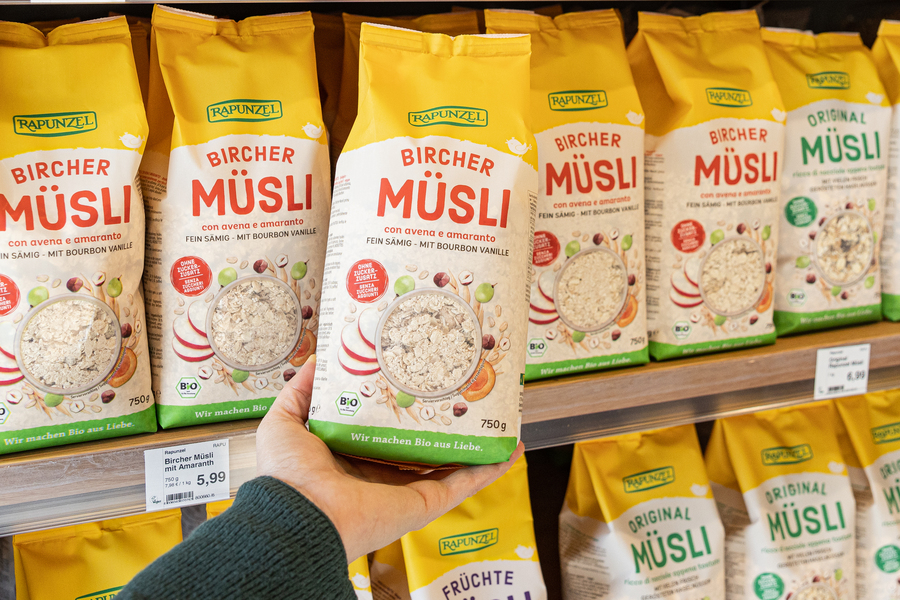 And, since it was so well received, they ended up mixing more and more, ultimately even using a bathtub for space reasons. A great deal has happened since that time: Not only has our founder’s hairstyle changed; the scope of production has, too, and the bathtub is now a museum piece. What hasn’t changed is that we still mix all mueslis and porridges at the Rapunzel headquarters in the Allgäu region.