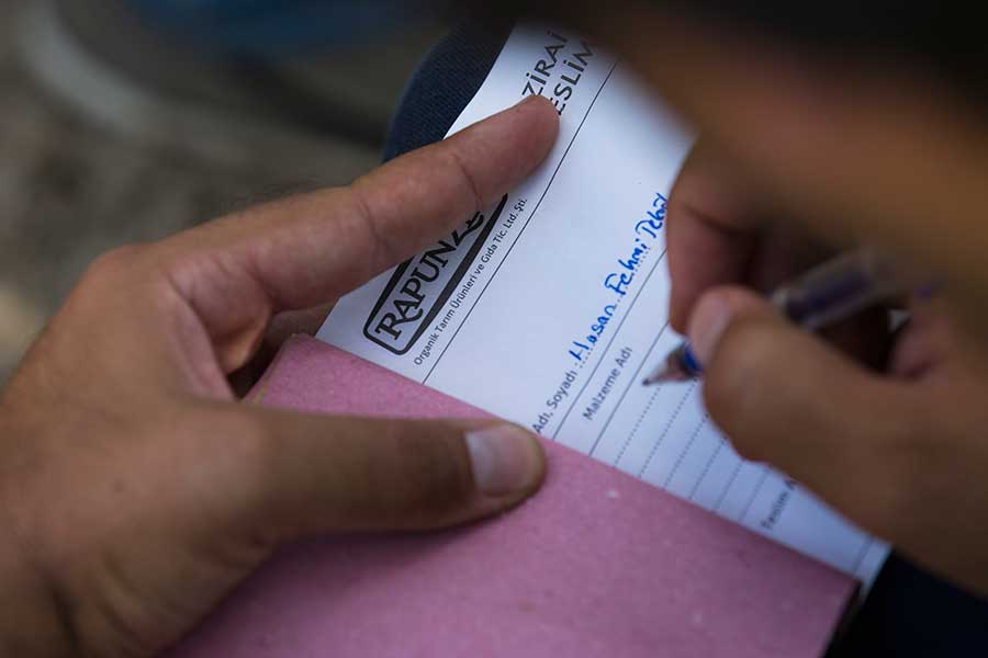 As the last task on this day, the agricultural engineers complete the papers. The documentation guarantees that organic cultivation in Tapunzel's Turkey project remains transparent and traceable.