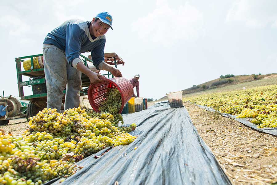 After the harvest, the grapes dry near the vineyard under the Turkish sun for four to six days in the Turkish sun to sultanas.