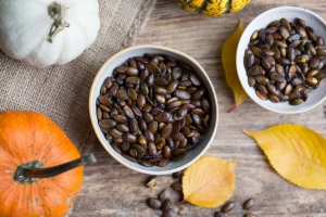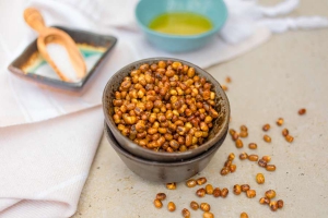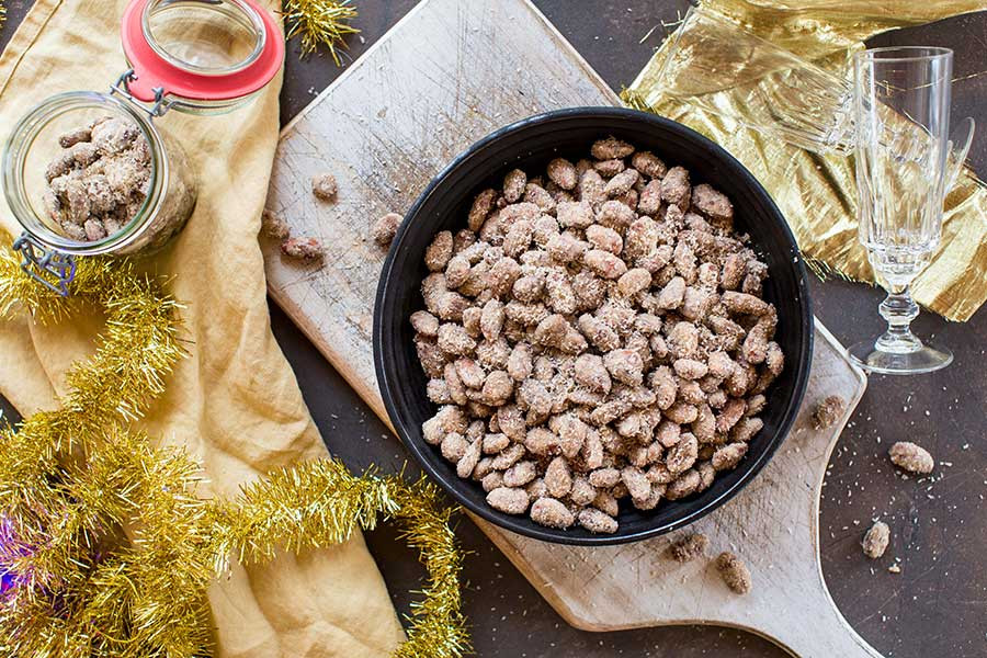 Roasted almonds with coconut blossom syrup and yeast flakes
