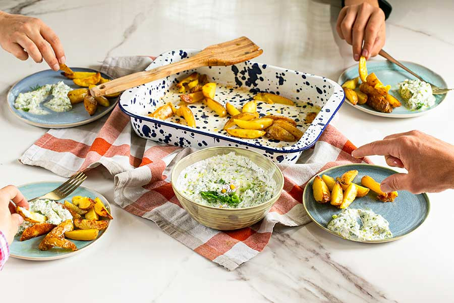 Fresh Herb dip with potato wedges