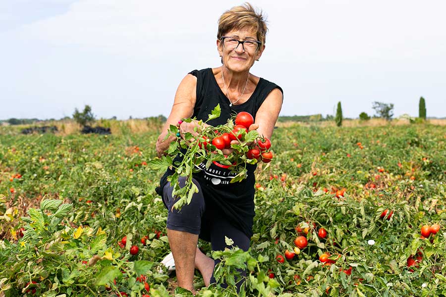 Simonetta's husband Terenzio and several other farmers grow the tomatoes on their own fields in the neighborhood of the processing plant.