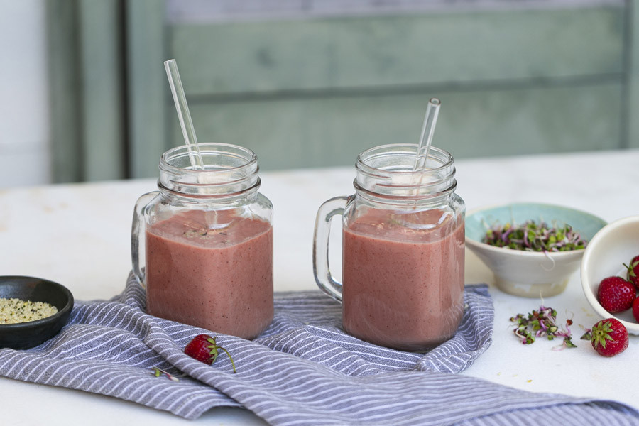 Smoothie with strawberries and sprouts